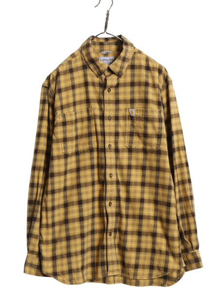 US企画 カーハート チェック フランネル 長袖 ボタンダウン シャツ メンズ L ストレッチ ネルシャツ ワーク ミドルウェイト 廃盤 ツートン