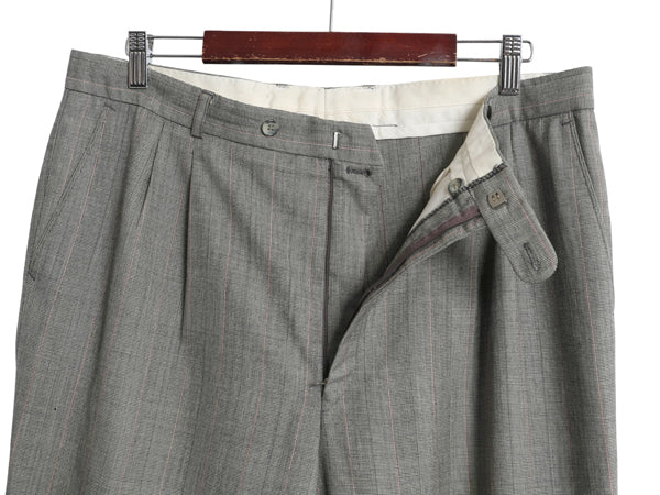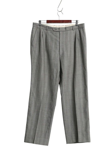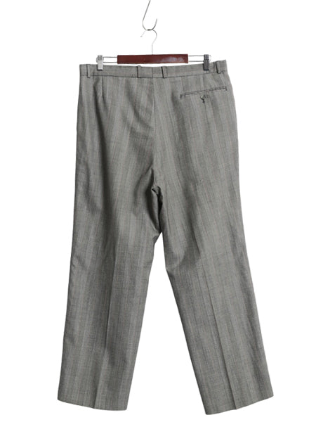 80s 90s サマー ウール スラックス パンツ 実寸 36 27 程/ 古着 ユーロ ヴィンテージ オールド ツータック ストレート チェック ストライプ