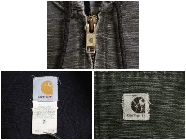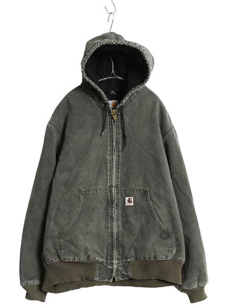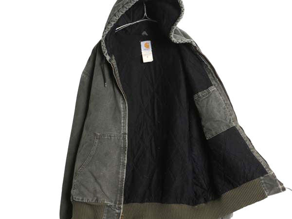 US企画 00s カーハート アクティブ ジャケット メンズ XL ワーク ダック パーカー 中綿 キルティング ライナー 大きいサイズ モス グリーン