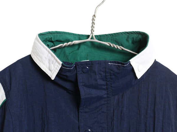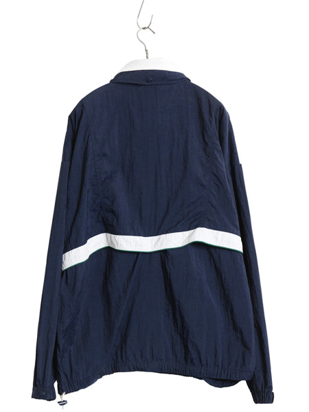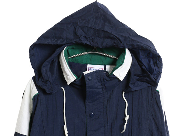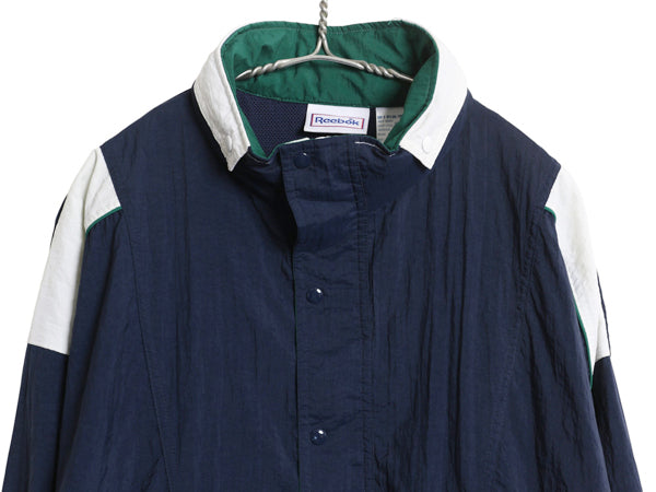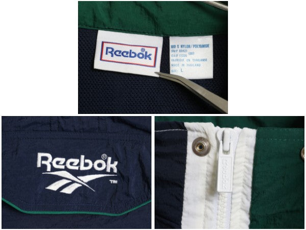 90s リーボック ハーフジップ ナイロン トラック ジャケット メンズ L オールド ウインドブレーカー プルオーバー ブルゾン 収納 フード 紺