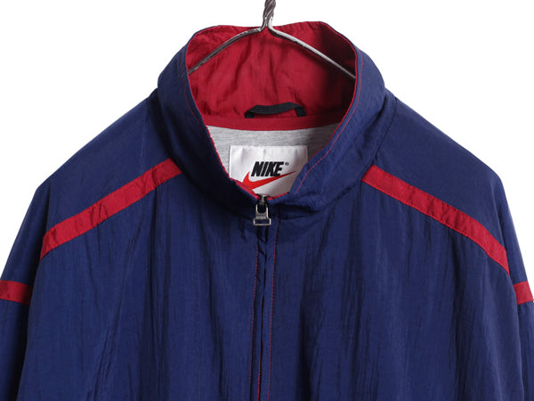 90s ナイキ フルジップ ナイロン トラック ジャケット メンズ L オールド ウインドブレーカー ブルゾン スウッシュ ワンポイント ツートン