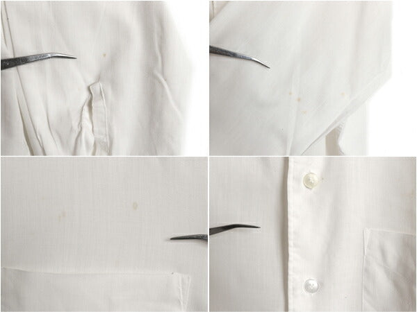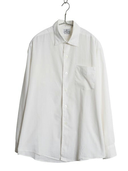 60s 無地 長袖 シャツ メンズ L 古着 ヴィンテージ 白シャツ ドレス ワイシャツ カジュアル シワになりにくい ホワイト シンプル きれいめ