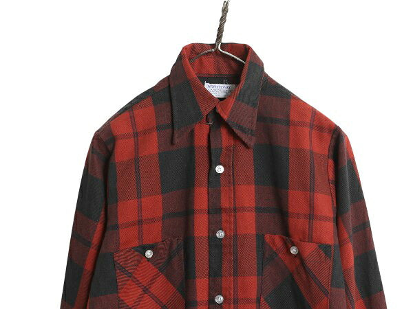 70s USA製 NORTHWAY チェック 長袖 シャツ メンズ M 古着 ヴィンテージ ヘビーウェイト コットン ツイル ポケット付き バッファロー 黒 赤