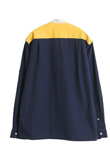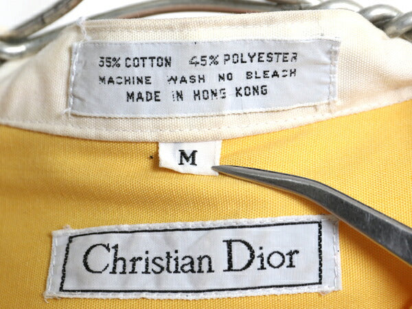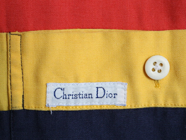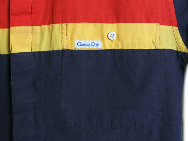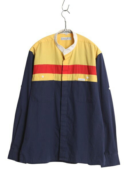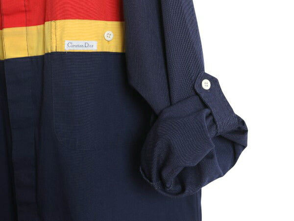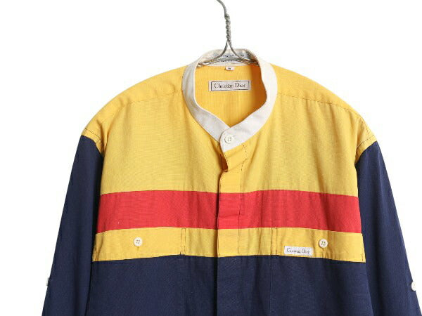 80s クリスチャン ディオール バンドカラー デザイン シャツ メンズ M / ヴィンテージ 長袖シャツ ワンポイント ロールアップ トリコロール
