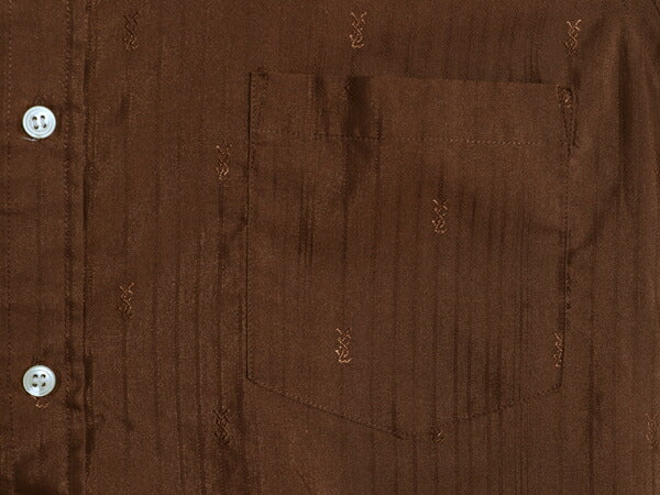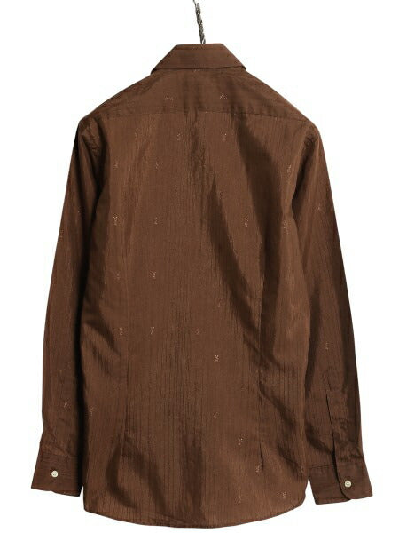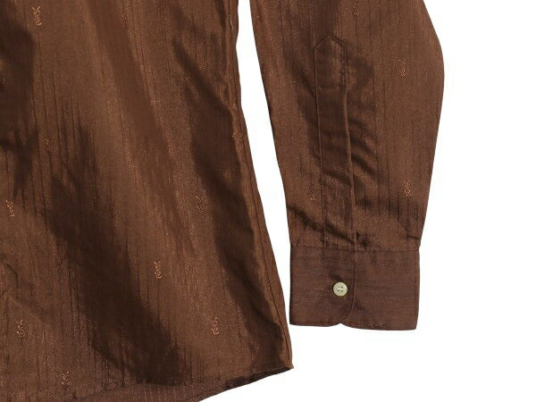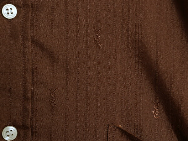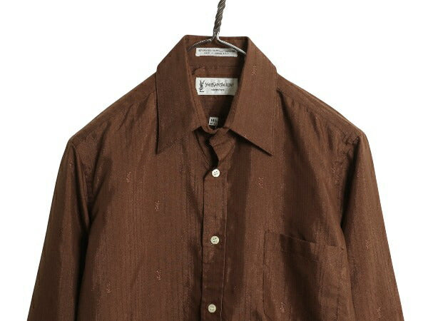 80s イヴサンローラン ストライプ 長袖 シャツ メンズ S 古着 ヴィンテージ ワイシャツ ドレス YSL 織り柄 モノグラム 茶 シワになりにくい