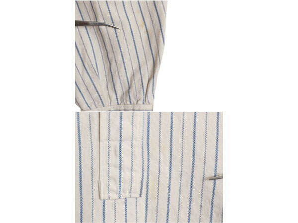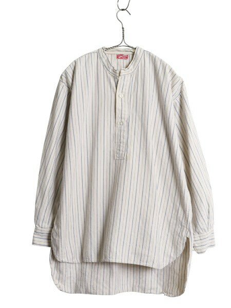 40s 50s Searchlight ストライプ グランパ シャツ メンズ L 程 古着 ユーロ ヴィンテージ 長袖シャツ プルオーバー マチ付き バンドカラー