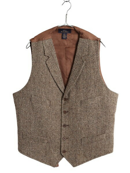 ブルックスブラザーズ ツイード ウール テーラード ベスト メンズ L 程/ ヘリンボーン ストライプ ジレ ノースリーブ 重ね着 前開き スーツ
