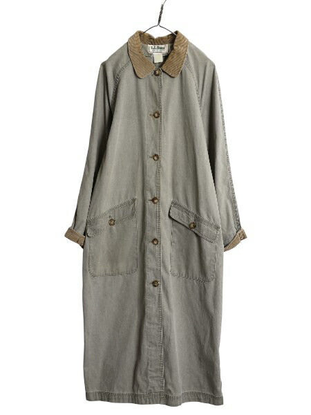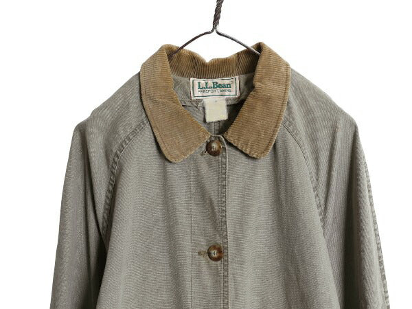 80s エルエルビーン ロング コート レディース XL 程/ ヴィンテージ ハンティング アウトドア フィールド ステンカラー キャンバス カーキ