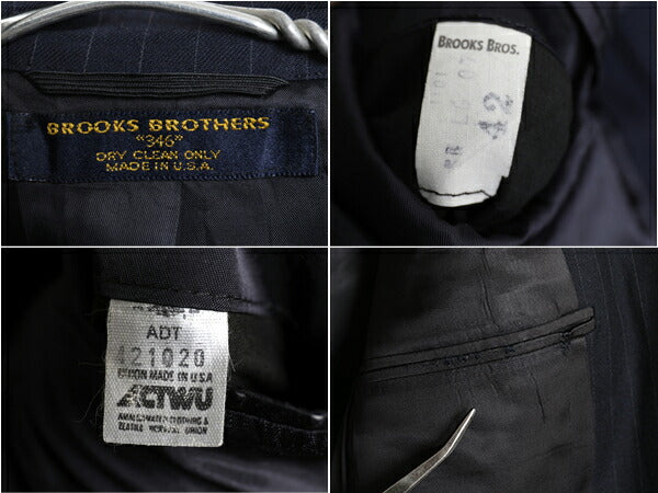 90s USA製 ブルックスブラザーズ ストライプ テーラード ジャケット メンズ L 程 古着 オールド ブレザー ウール きれいめ トラッド 紺 白