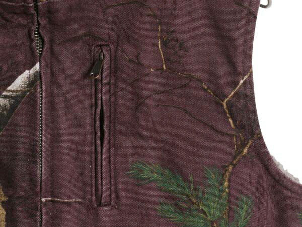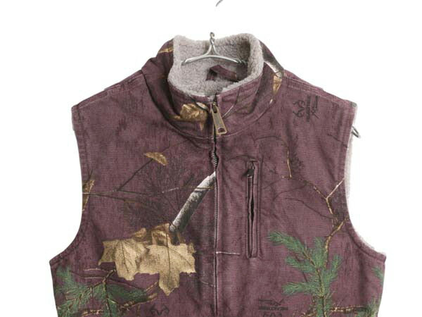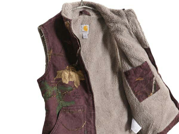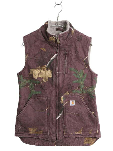 US企画 カーハート モックネック ダック ベスト レディース XS 古着 リアルツリー カモ 迷彩 裏 パイル フリース 重ね着 アウトドア ワーク