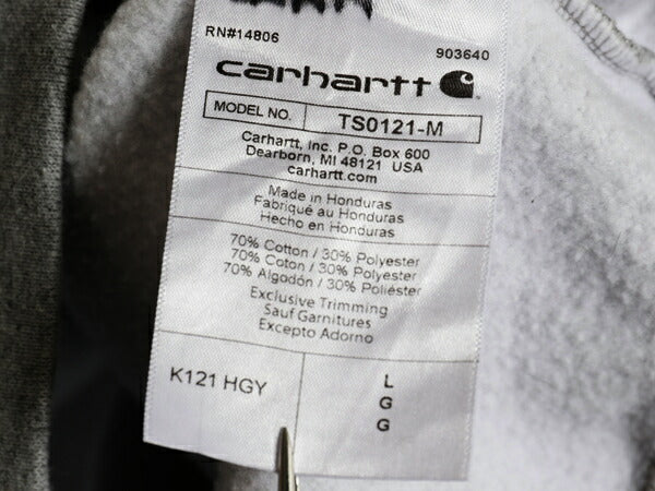 カーハート スウェット フード パーカー メンズ L / トレーナー ミドルウェイト プルオーバー 裏起毛 ワンポイント ゆったり 霜降り グレー