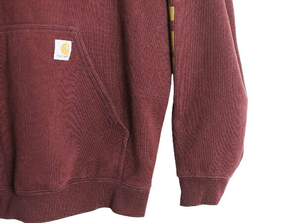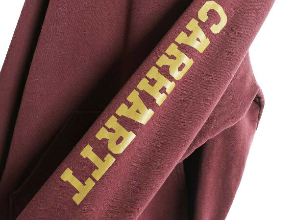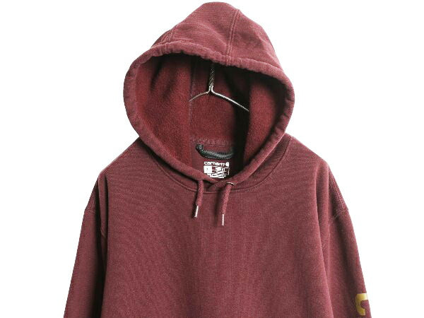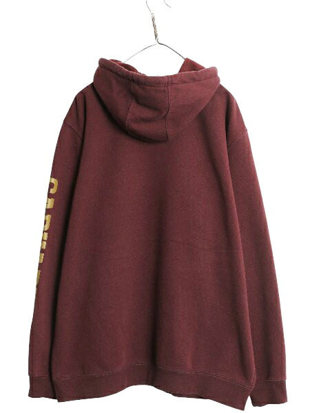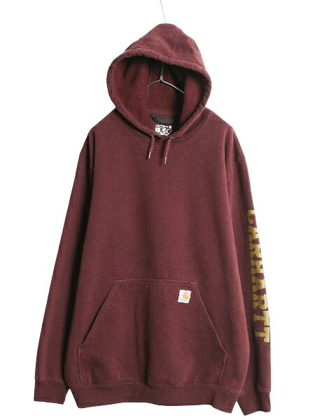 US企画 カーハート スウェット フード パーカー メンズ XL 袖 ロゴ プリント トレーナー 裏起毛 プルオーバー ミドルウェイト 大きいサイズ
