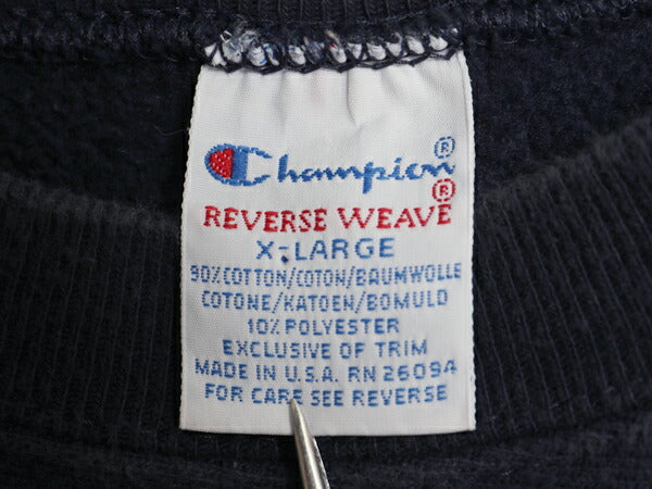 90s USA製 チャンピオン リバースウィーブ 3段 カレッジ プリント スウェット メンズ XL / オールド トレーナー 裏起毛 大きいサイズ 紺