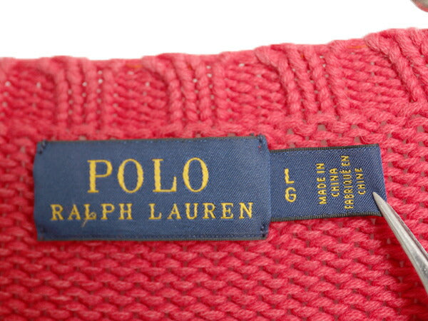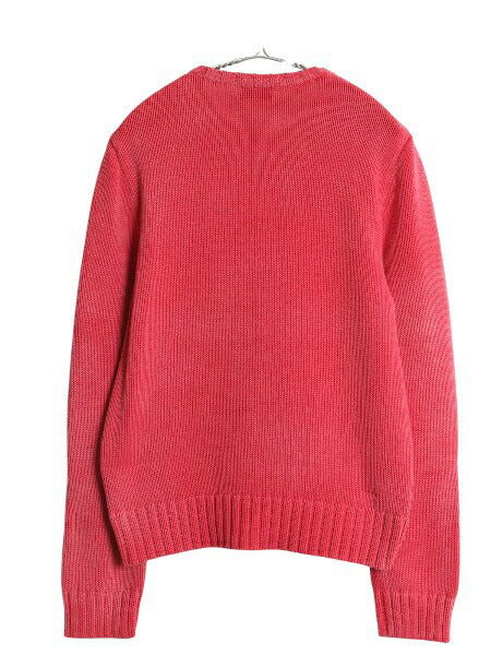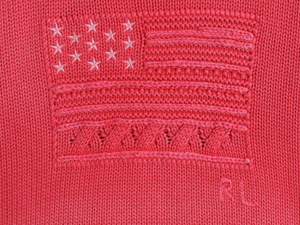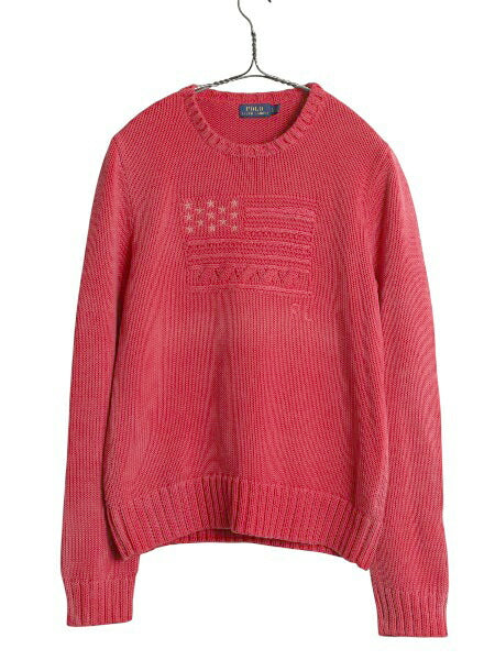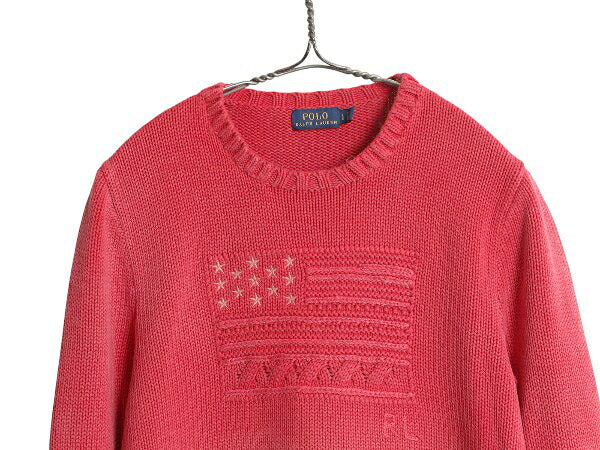 ポロ ラルフローレン 星条旗 コットン ニット セーター レディース L / 長袖ニット コットンニット プルオーバー ミドルゲージ 淡い レッド