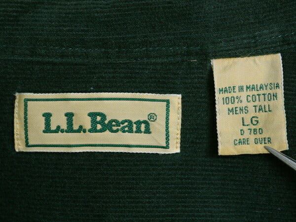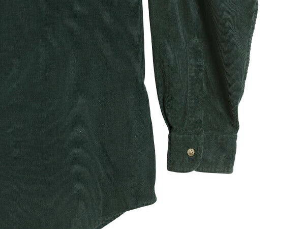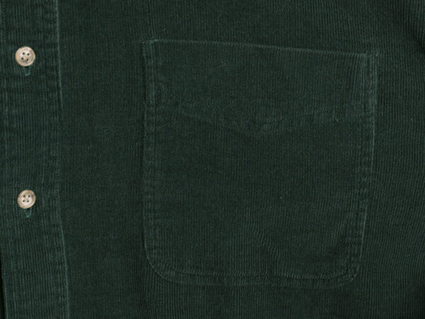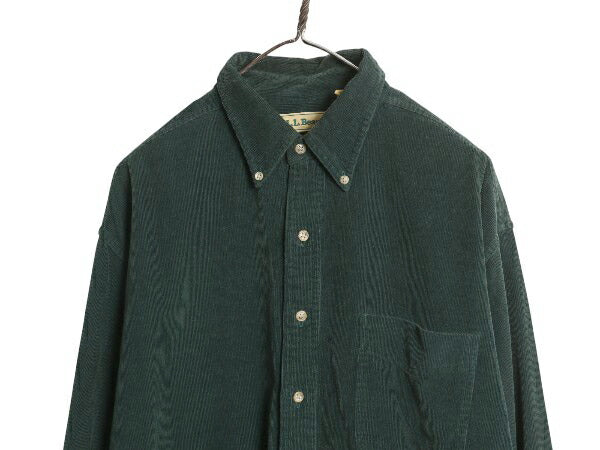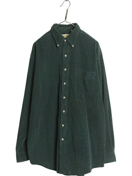 90s エルエルビーン 細畝 コーデュロイ 長袖 ボタンダウン シャツ メンズ L / オールド アウトドア 長袖シャツ ポケット付き 無地 グリーン