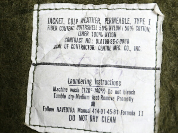 制式名称:JACKET, COLD WEATHER PERMEABLE TYPE1