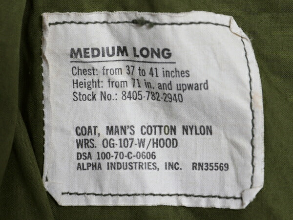 ほぼ デッドストック 70s ALPHA 社製 米軍実物 US ARMY M-65 フィールド ジャケット MEDIUM LONG / 70年製 ヴィンテージ ミリタリー 2nd