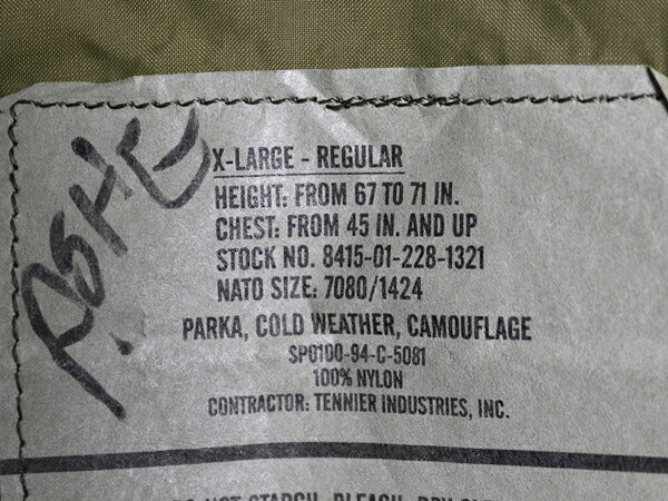 制式名称は、PARKA,COLD WEATHER,CAMOUFLAGE