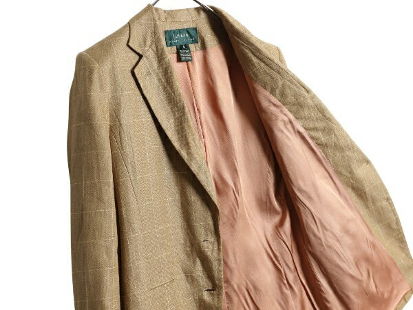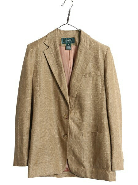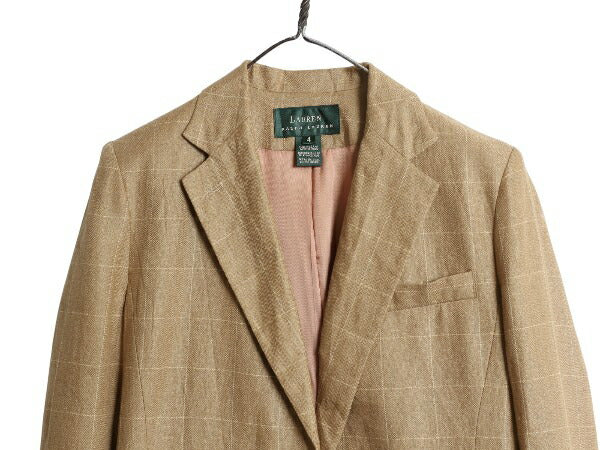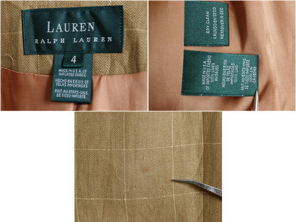 デッドストック 90s USA製 ローレン ラルフローレン テーラード ジャケット S 程 / オールド ポロ 100% リネン サマー ブレザー チェック