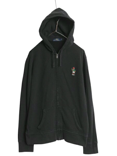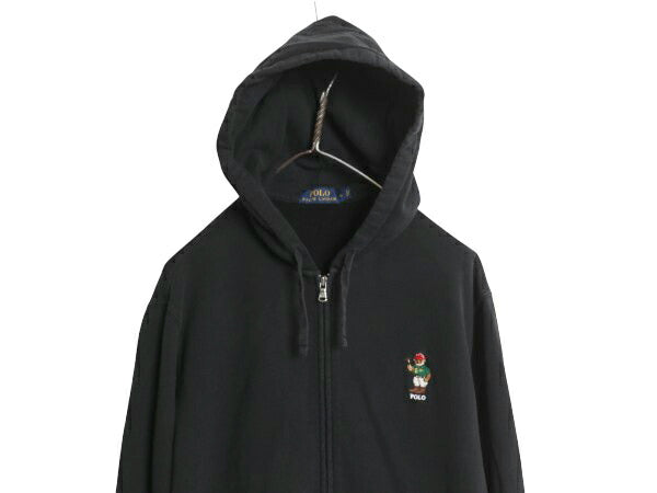 ポロベア ポロ ラルフローレン フルジップ スウェット フード パーカー メンズ L / トレーナー 裏起毛 ワンポイント 刺繍 キャラクター 黒