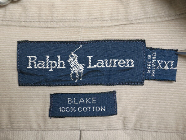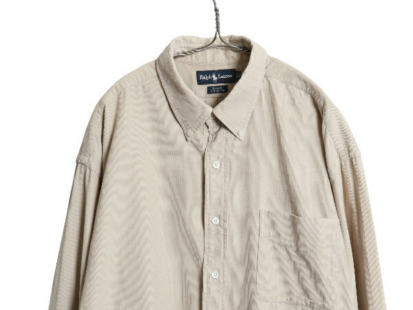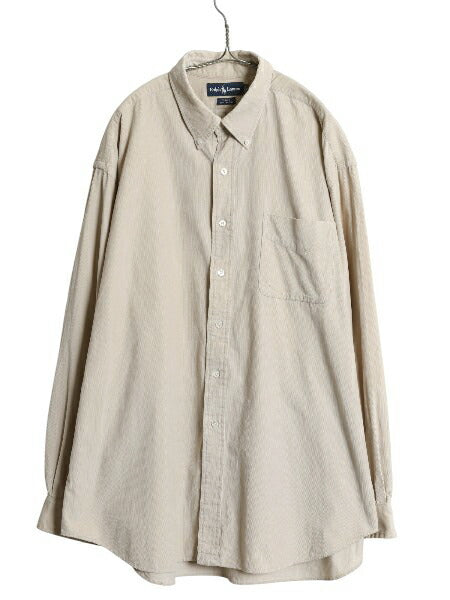 90s ラルフローレン 細畝 コーデュロイ 長袖 ボタンダウン シャツ メンズ XXL オールド ポロ 大きいサイズ 長袖シャツ ポケット付き 無地