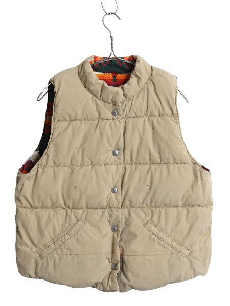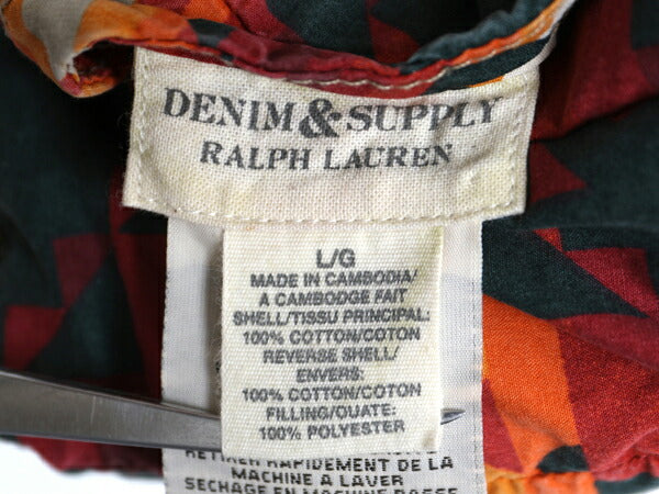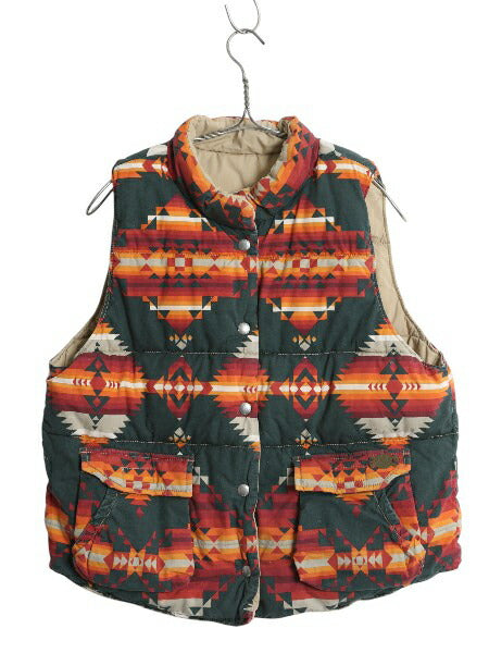 デニム&サプライ ラルフローレン リバーシブル 中綿 ベスト レディース L / ポロ コットン ポプリン ネイティブ 総柄 無地 前開き 重ね着