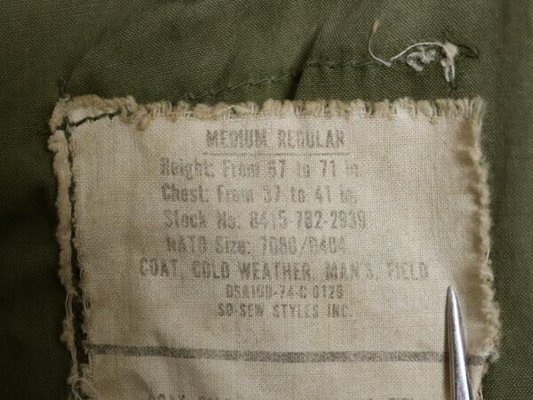 70s 米軍実物 US ARMY M-65 フィールド ジャケット MEDIUM REGULAR / 古着 74年製 ヴィンテージ ミリタリー 軍物 ブルゾン 3rd ブラス M65