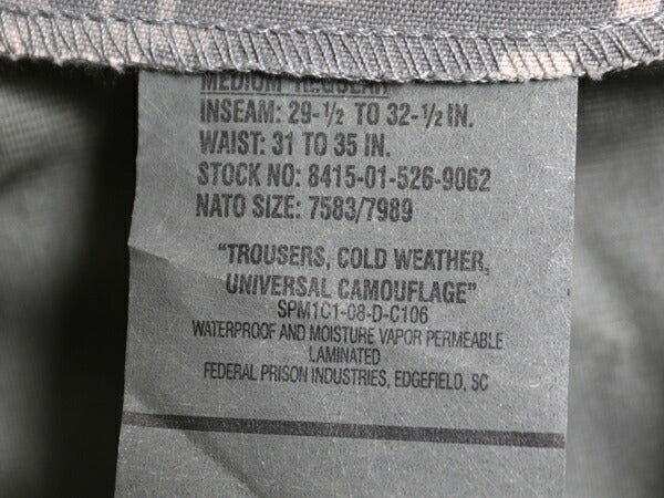 正式名称は、TROUSERS.COLD WEATHER.UNIVERSAL CAMOUFLAGE