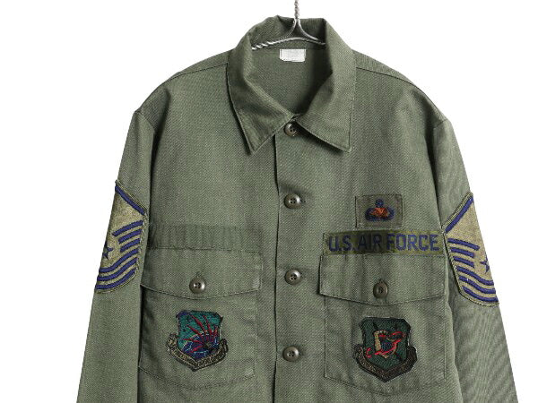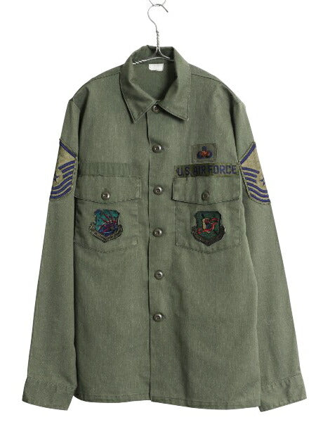 80s 米軍実物 US AIR FORCE ユーティリティ シャツ メンズ M 程 87年製 ヴィンテージ ミリタリー アーミー 軍物 OG507 フルパッチ オリーブ