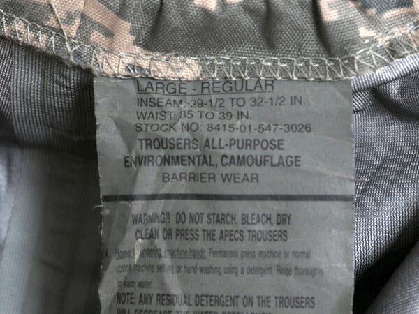 デッドストック 民間 APECS デジタル タイガー カモ オーバー パンツ LARGE REGULAR 新品 ゴアテックス USAF ABU ECWCS カーゴ 迷彩柄 軍物