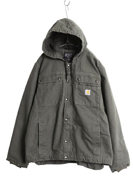 US企画 カーハート ダック パーカー ジャケット メンズ XL / 裏 ボア パイル フリース ワーク フード ブルゾン オリーブ 廃盤 大きいサイズ