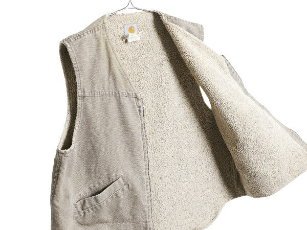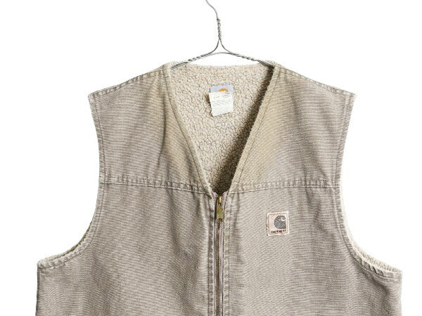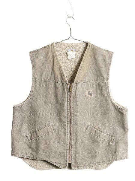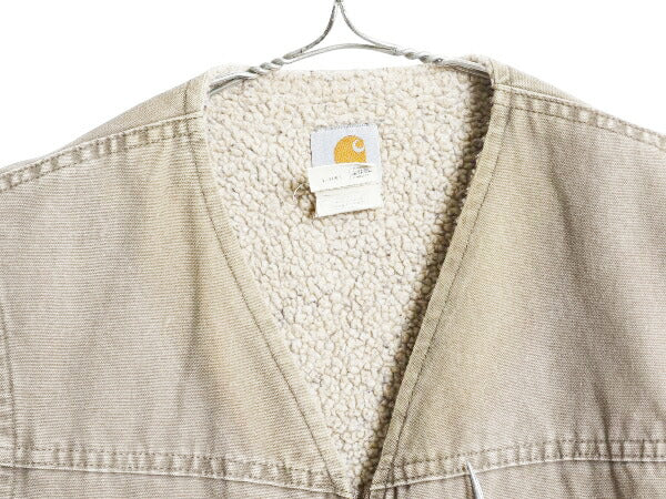 US企画 00s USA製 カーハート 裏 ボア ダック ベスト メンズ XL 古着 オールド パイル フリース ライナー 重ね着 フルジップ 大きいサイズ