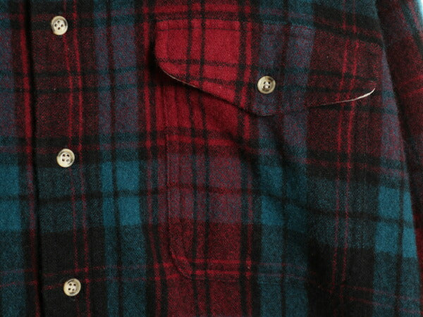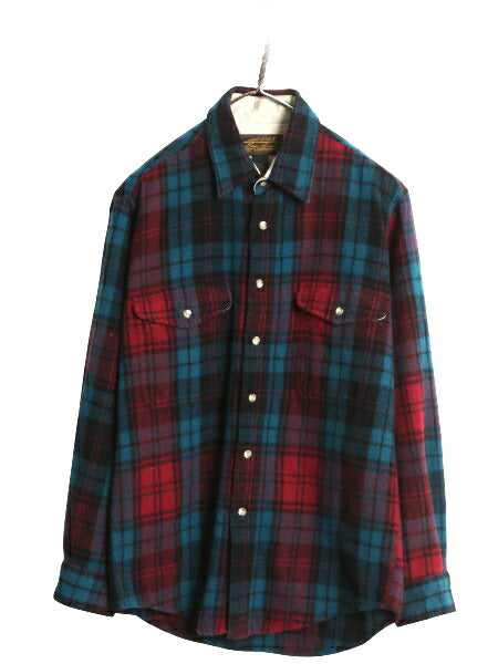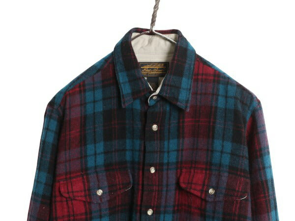 90s エディーバウアー チェック 長袖 ウール シャツ メンズ M / オールド 旧タグ 黒タグ 長袖シャツ ポケット付き マルチカラー カジュアル