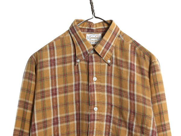 70s Golden Line チェック 3点留め ボタンダウン 長袖 シャツ メンズ M / 古着 ヴィンテージ シワになりにくい 薄手 ノーアイロン BDシャツ