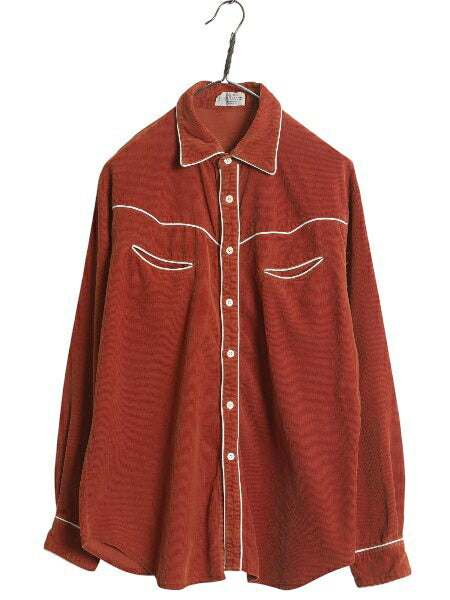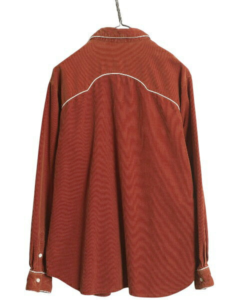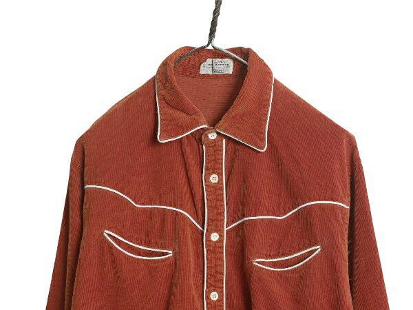 80s シアーズ 細畝 コーデュロイ 長袖 ウエスタン シャツ メンズ L / ヴィンテージ スマイル ポケット付き カジュアル 長袖シャツ ツートン