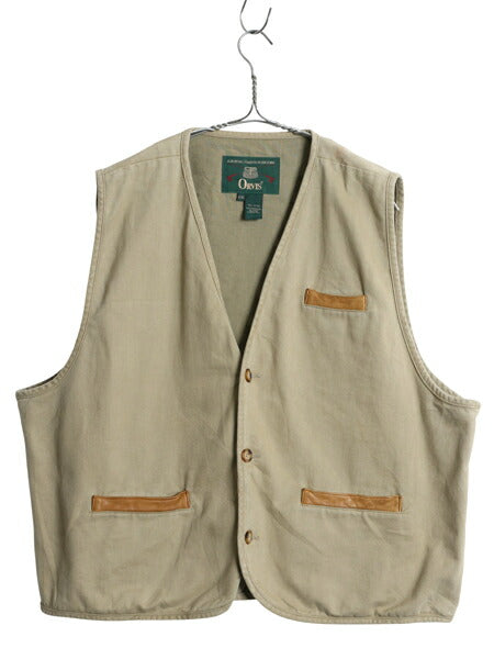 90s オービス コットン ベスト メンズ XXL / 古着 オールド 本革 レザー 重ね着 前開き サファリ ハンティング アウトドア 大きいサイズ