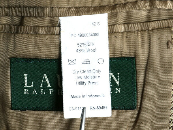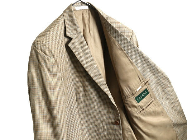 デッドストック ローレン ラルフローレン テーラード ジャケット メンズ L 程/ 新品 ポロ ブレザー スーツ シルク ウール チェック サマー