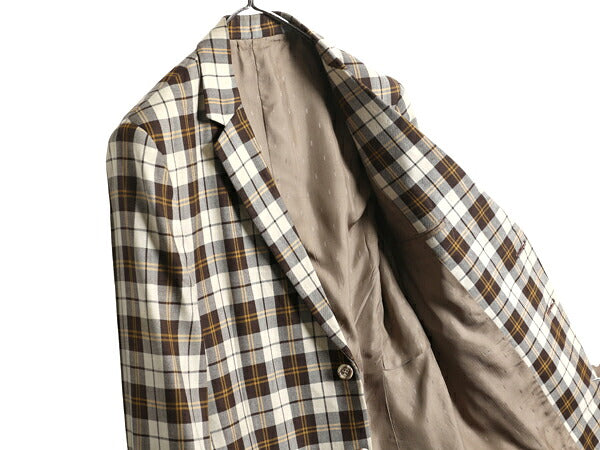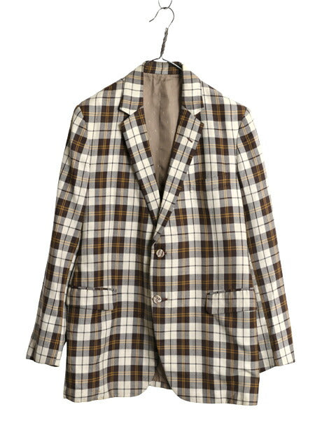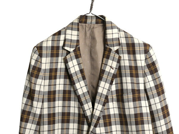 60s 70s D.S.Gandhi ウール テーラード ジャケット メンズ L 程 / ヴィンテージ ブレザー スーツ チェック きれいめ トラッド マルチカラー