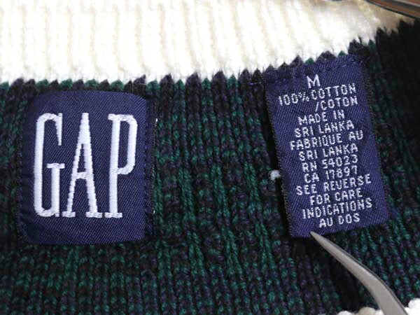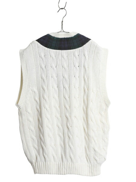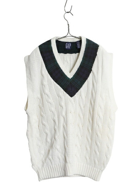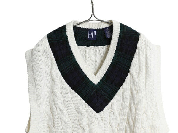 90s オールド ギャップ チルデン ケーブル ニット ベスト メンズ レディース M / 古着 紺タグ コットン Vネック ブラックウォッチ 重ね着