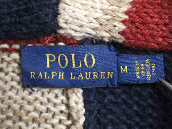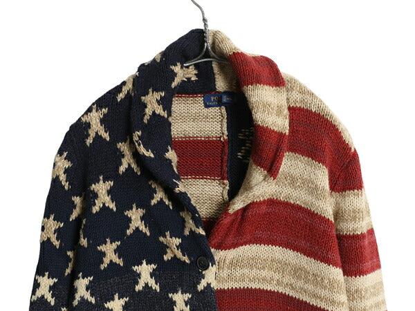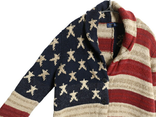 ポロ ラルフローレン 星条旗 総柄 ショールカラー ニット カーディガン レディース M / コットン リネン セーター ヘビーウェイト 前開き
