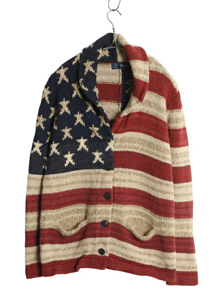 星条旗 総柄 ショールカラー ニット カーディガンです。