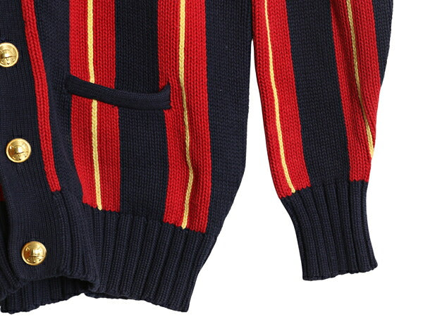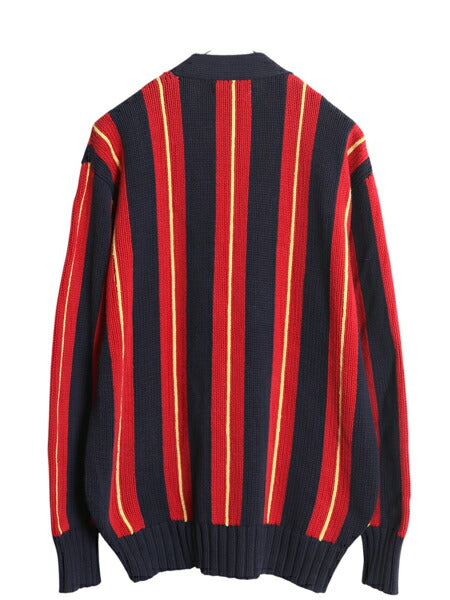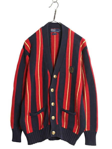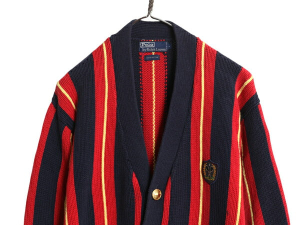 90s ポロ ラルフローレン ストライプ コットン ニット カーディガン メンズ L / オールド セーター 金ボタン テニス ワンポイント 前開き