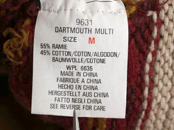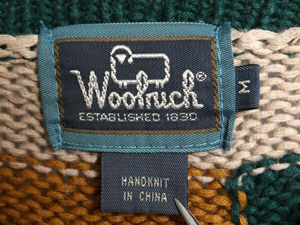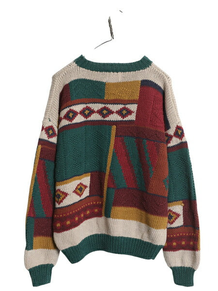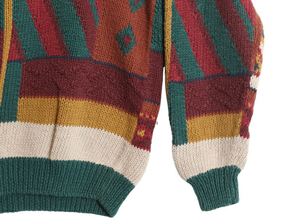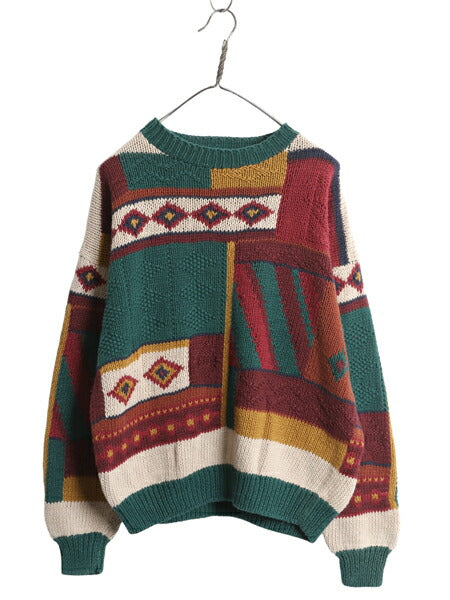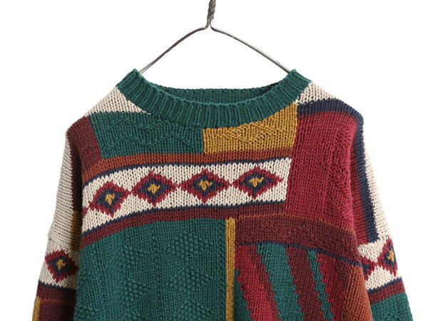 90s ウールリッチ デザイン ニット セーター メンズ M オールド 立体編み コットン ラミー ハンドメイド 手編み マルチカラー クレイジー