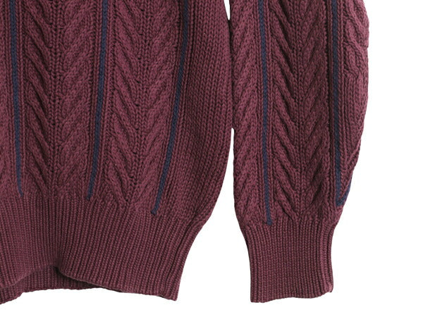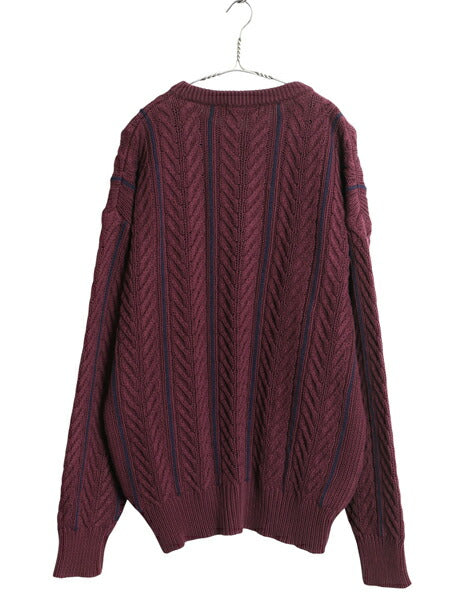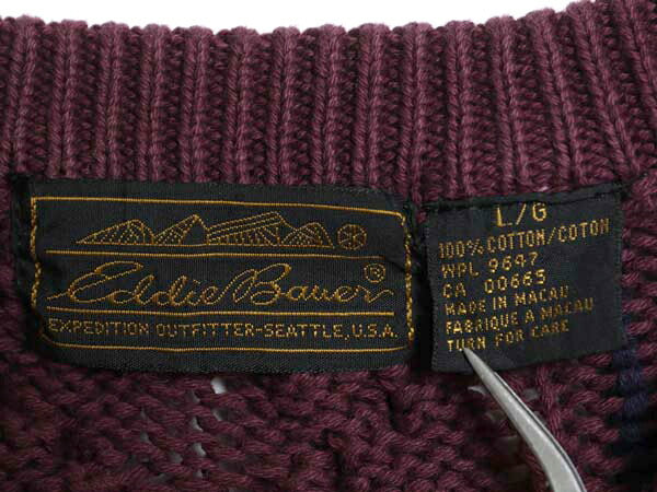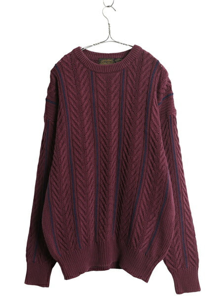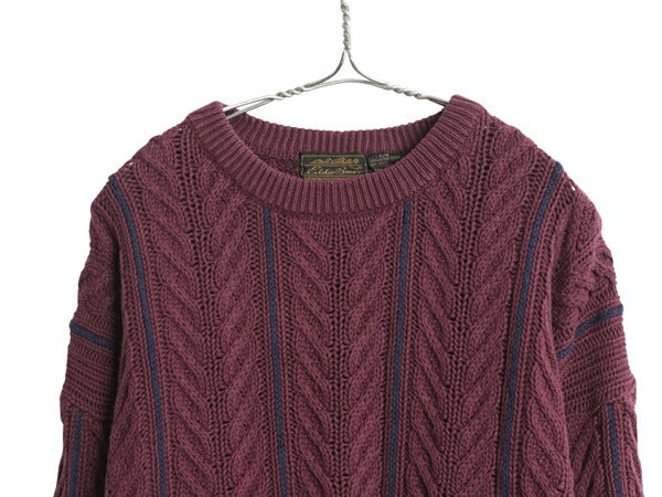 80s エディーバウアー ストライプ コットン ケーブル 二ット セーター メンズ L 黒タグ ヴィンテージ ヘビーウェイト 長袖ニット ツートン