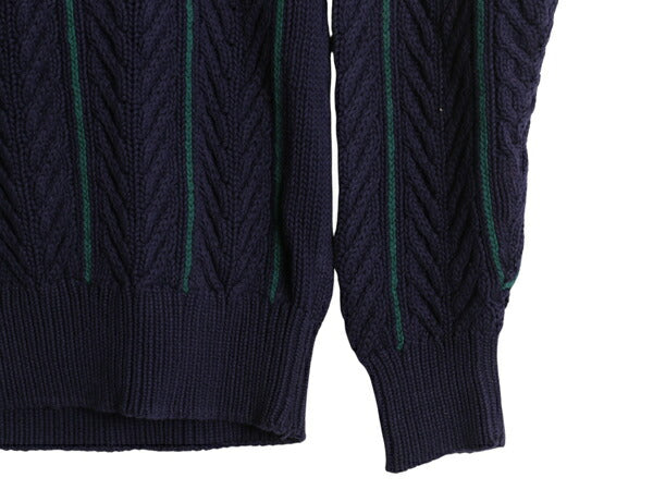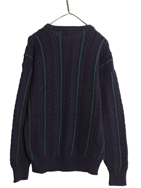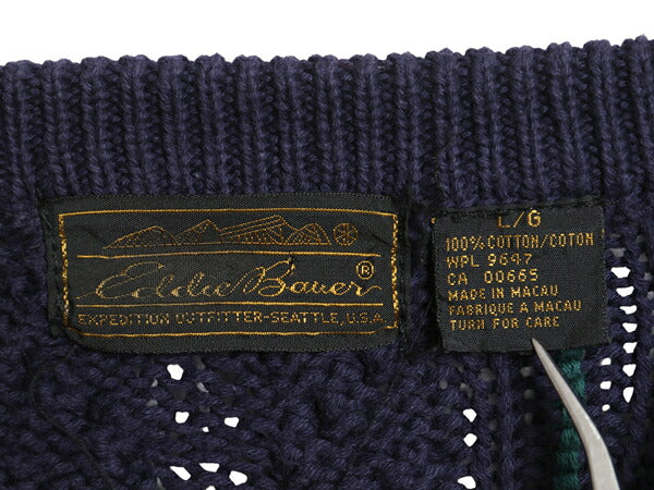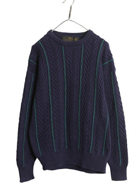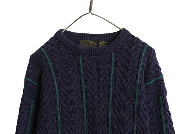 80s エディーバウアー ストライプ コットン ケーブル 二ット セーター メンズ L 黒タグ ヴィンテージ ツートン ヘビーウェイト 長袖ニット