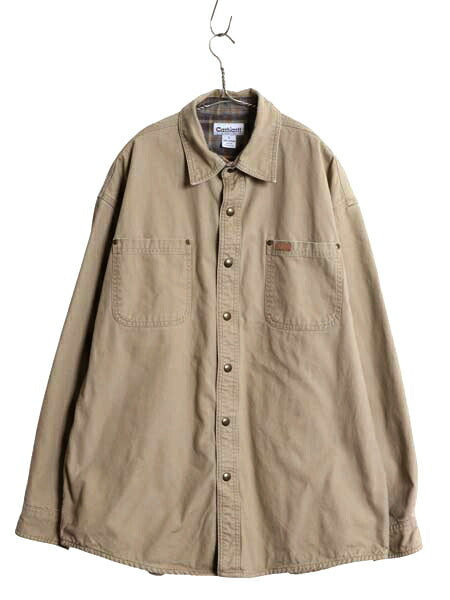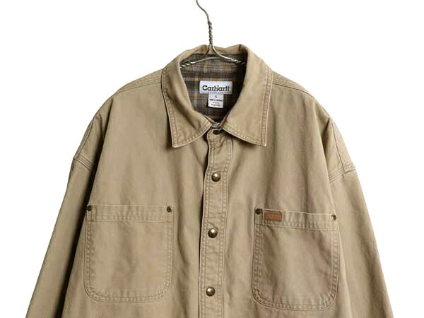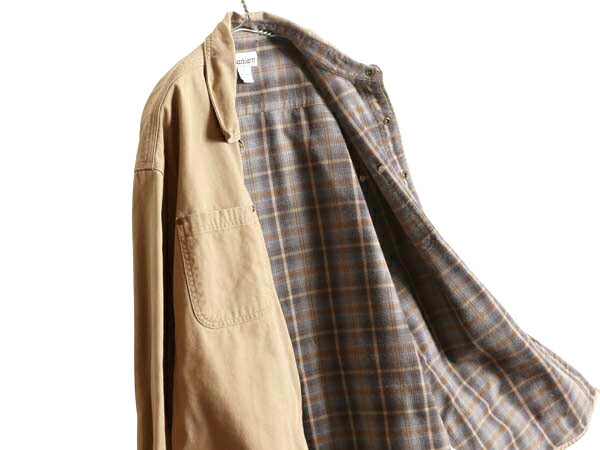 US企画 カーハート コットン キャンバス シャツ ジャケット メンズ L / 古着 ワーク ダック チェック フランネル ライナー付き 長袖シャツ