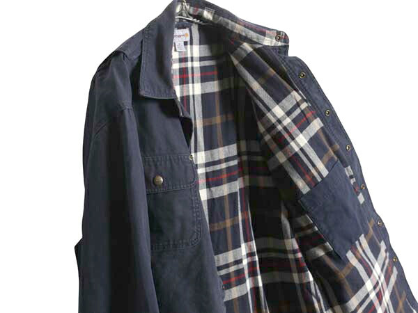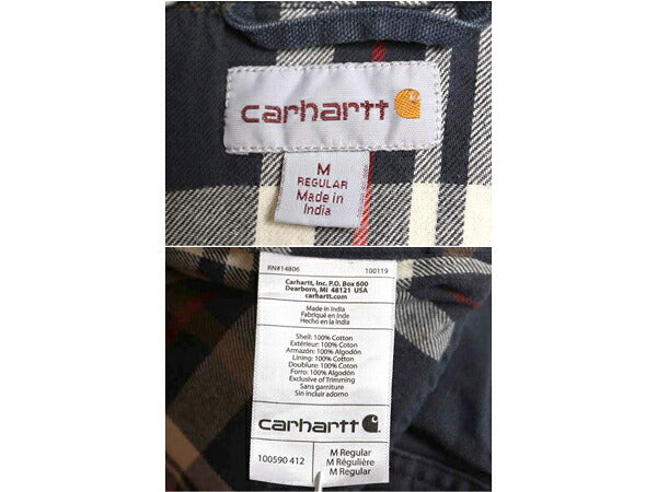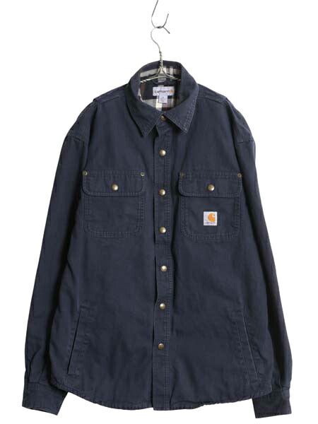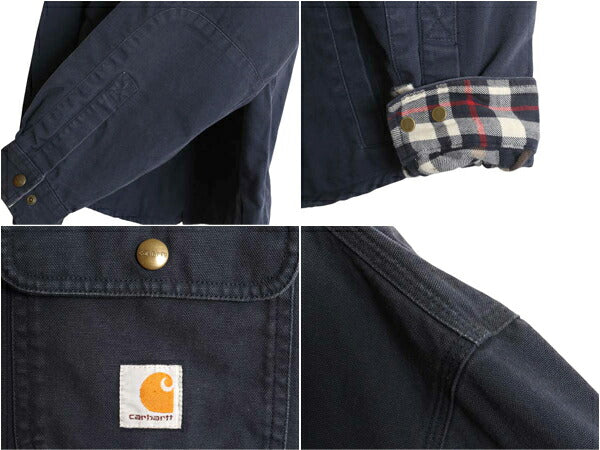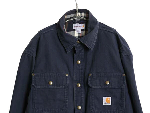 US企画 カーハート コットン キャンバス シャツ ジャケット メンズ M / 古着 ワーク ダック チェック フランネル ライナー付き 長袖シャツ