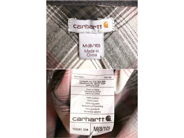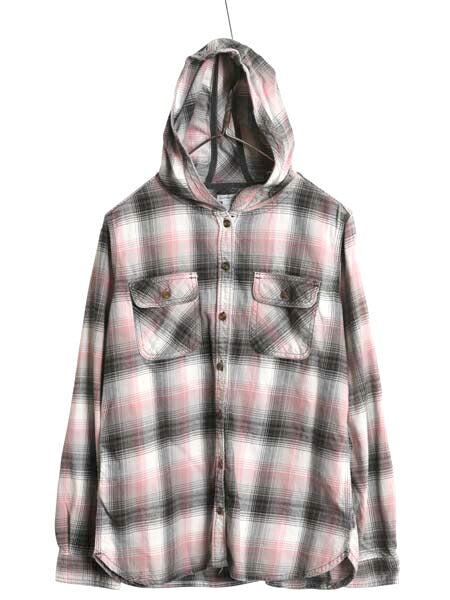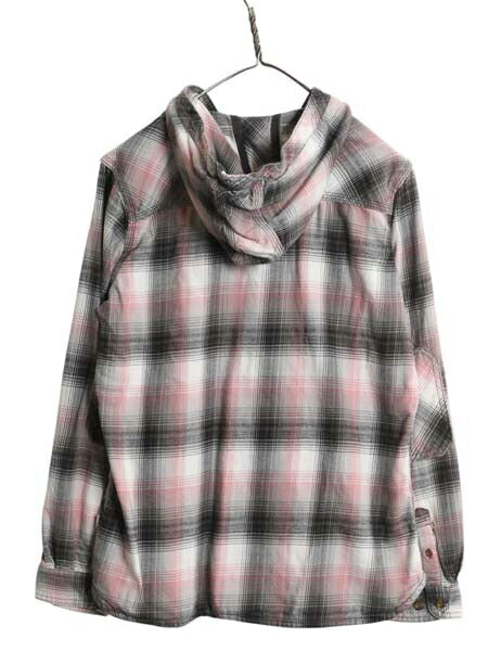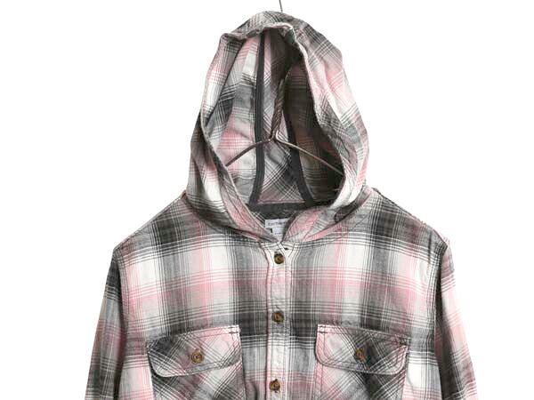 US企画 カーハート チェック フード付き 長袖 フランネル シャツ レディース M / 古着 ワーク ネルシャツ ライトウェイト パーカー 廃盤