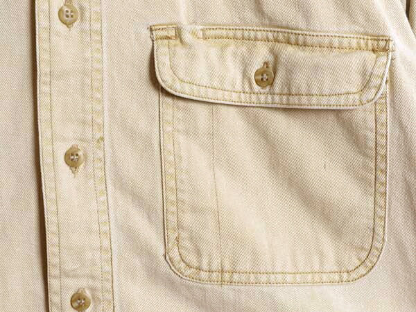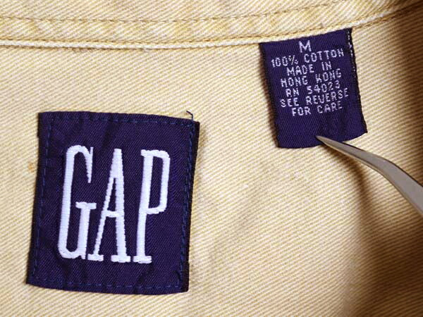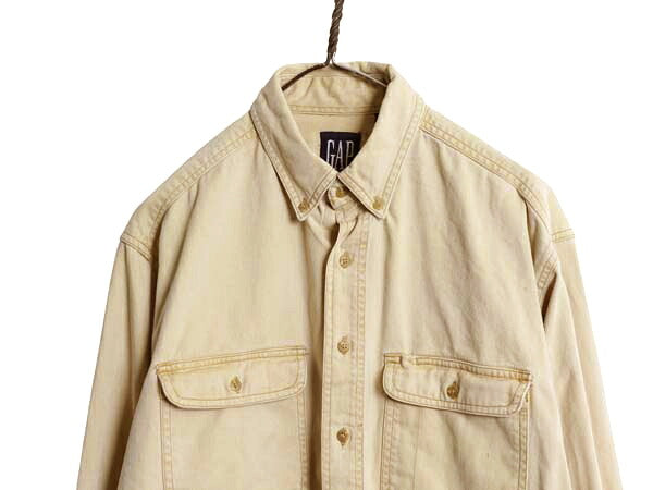 90s オールド ギャップ 長袖 ボタンダウン シャツ メンズ M 紺タグ コットン キャンバス ヘビーウェイト 長袖シャツ 無地 デカタグ カーキ