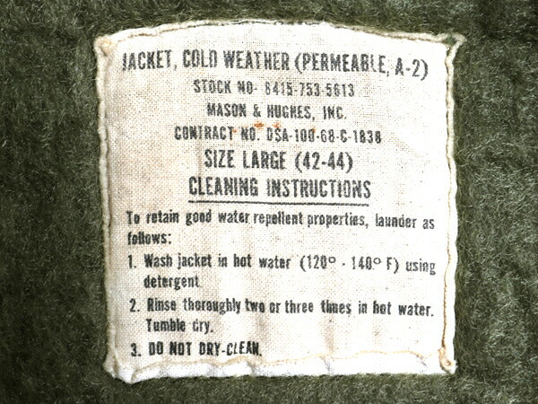 制式名称:JACKET, COLD WEATHER (PERMEABLE, A-2)